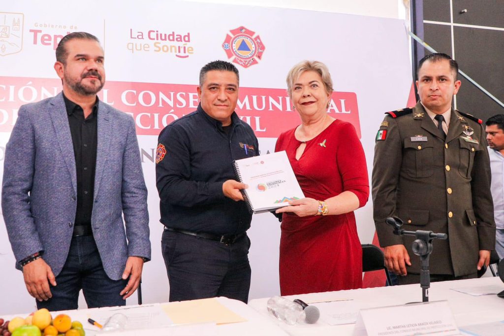 Tepic.- El Gobierno de Tepic, que encabeza la presidenta municipal, Leticia Araiza, instaló el Consejo Municipal de Protección Civil para la temporada de ciclones tropicales 2024.