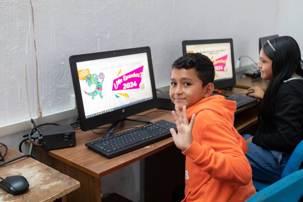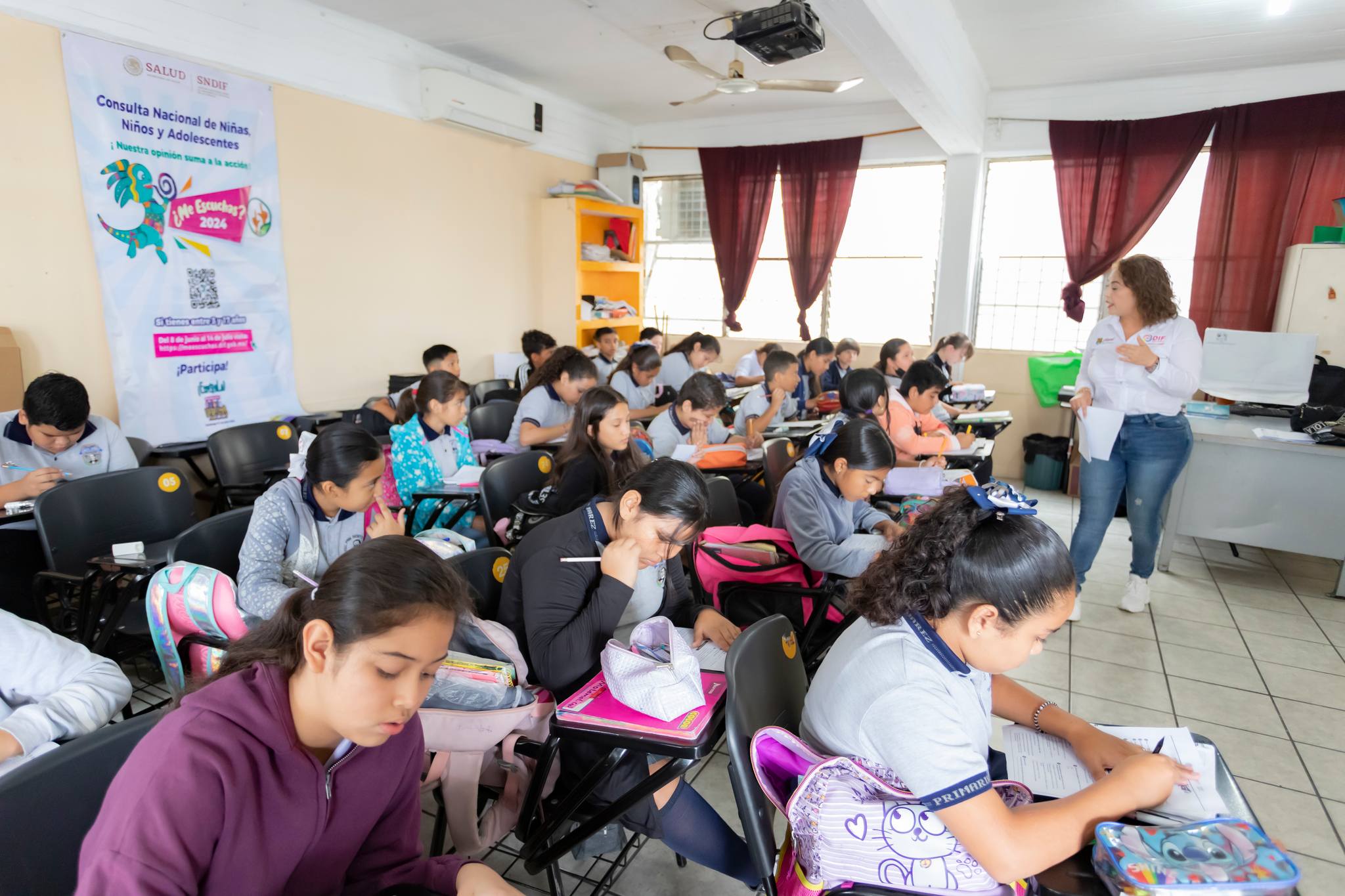 470 niños y niñas de la escuela primaria Benito Juárez están compartiendo sus ideas sobre el futuro que desean a través de la consulta nacional «¿Me Escuchas?» 2024.