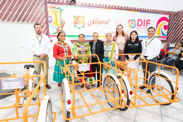 Tepic, Nayarit; 27 de junio de 2024.- La presidenta del Sistema DIF Nayarit, doctora Beatriz Estrada Martínez, encabezó la entrega de 100 triciclos de carga a igual número de familias de escasos recursos, de los 20 municipios de la entidad, con lo que no solo mejorará la calidad de vida de las y los beneficiarios, sino también les ofrecerá una herramienta para construir el futuro que desean.
