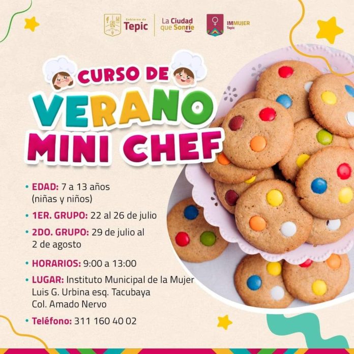 El curso de verano Mini Chef, que organiza el Gobierno de Tepic; está dirigido niñas y niños de 7 años de edad en adelante, el cual inicia este 22 de julio del presente año. Para mayor información llama al 311-160-40-02.