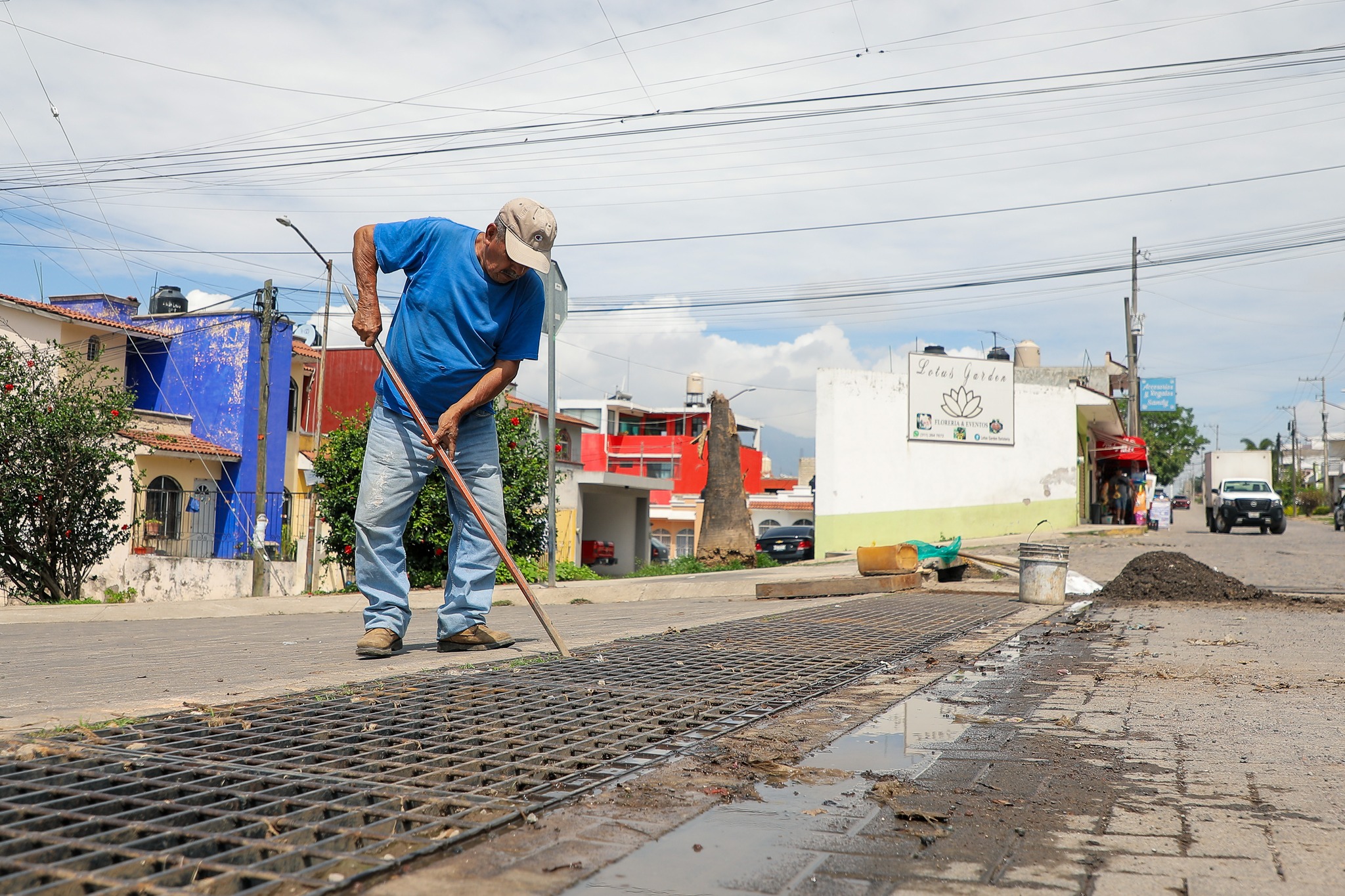 El Gobierno de Tepic continúa con desazolve de rejillas en diferentes puntos de la ciudad para prevenir encharcamientos esta temporada: hoy la brigada de Obras Públicas estuvo brindando limpieza a las rejillas de la calle Texcoco, del Fraccionamiento Colinas del Valle.