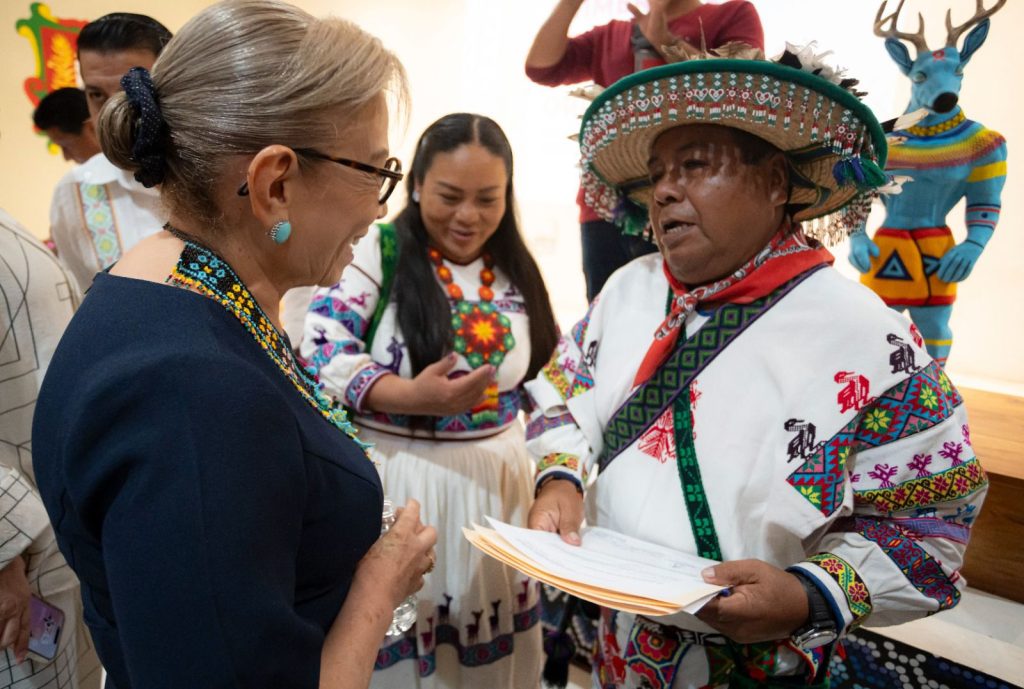 La señora Alejandra Margarita Gómez Hernández, artesana representante del pueblo Mexikan de Mesa de la Laguna, en el municipio de Acaponeta, agradeció a la doctora Beatriz Estrada por su incansable compromiso y dedicación hacia los pueblos originarios, transformado no solo sus vidas, sino también otorgándoles esperanza al escucharles y gestionar un mejor futuro para ellas, ellos y sus familias.