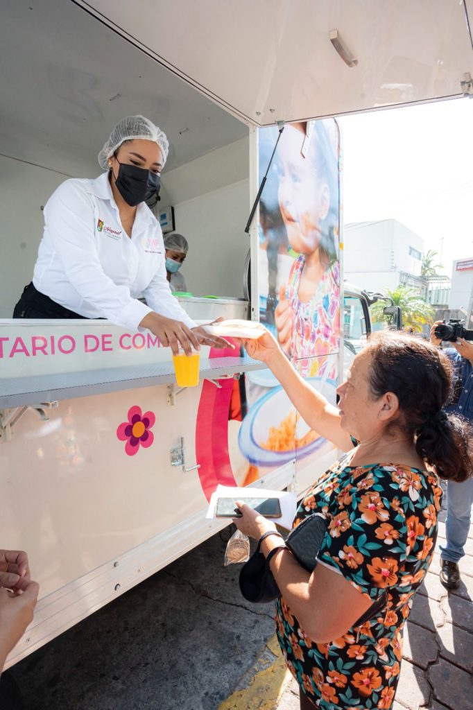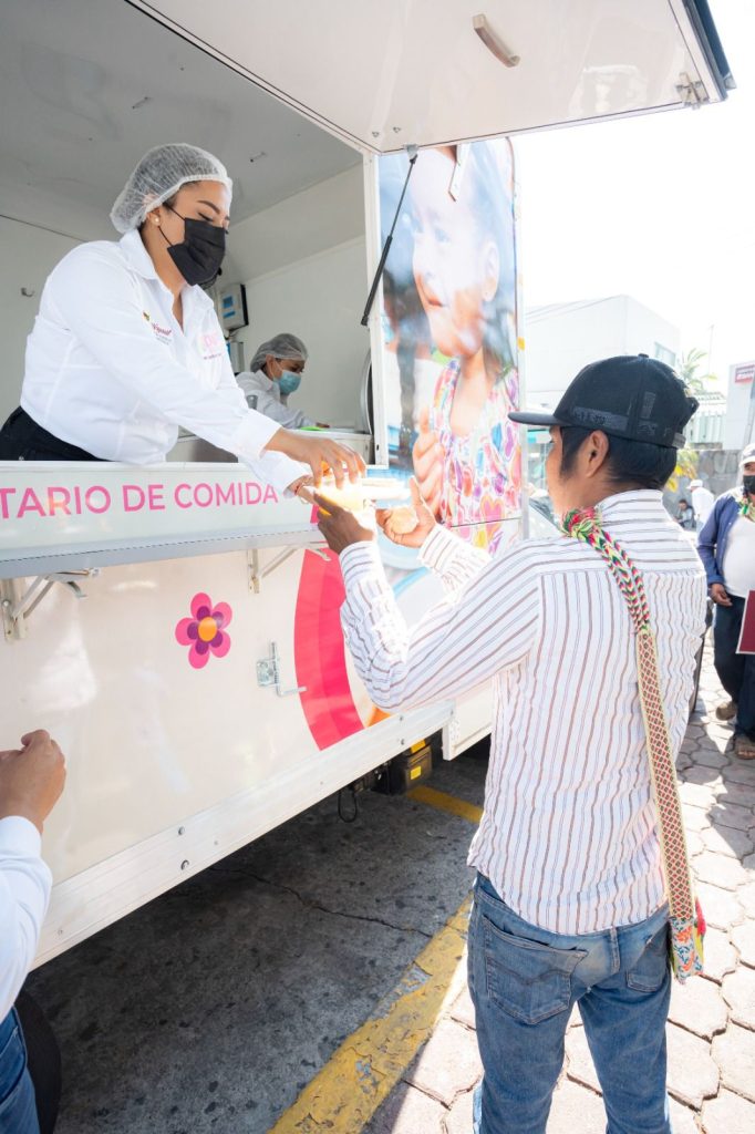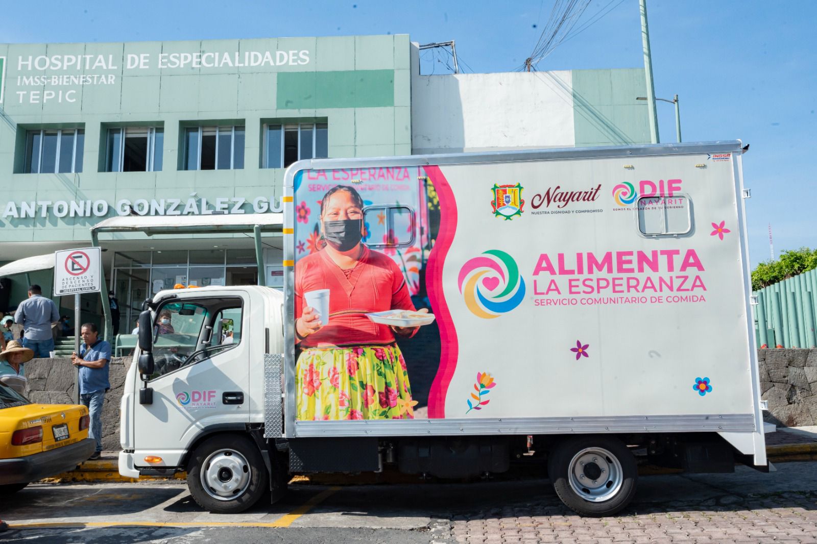 Personal del programa Alimenta la Esperanza, prepara todos los días alimentos sanos y nutritivos en un camión con una cocina adaptada, para ser entregados con todas las medidas de sanidad y de manera puntual a quienes más lo necesitan, en un horario de 8:30 horas para el desayuno y 12:30 horas para la comida. Es así como el Corazón de Tu Gobierno, cobija, acompaña y apoya la economía de las y los nayaritas durante los momentos más difíciles.