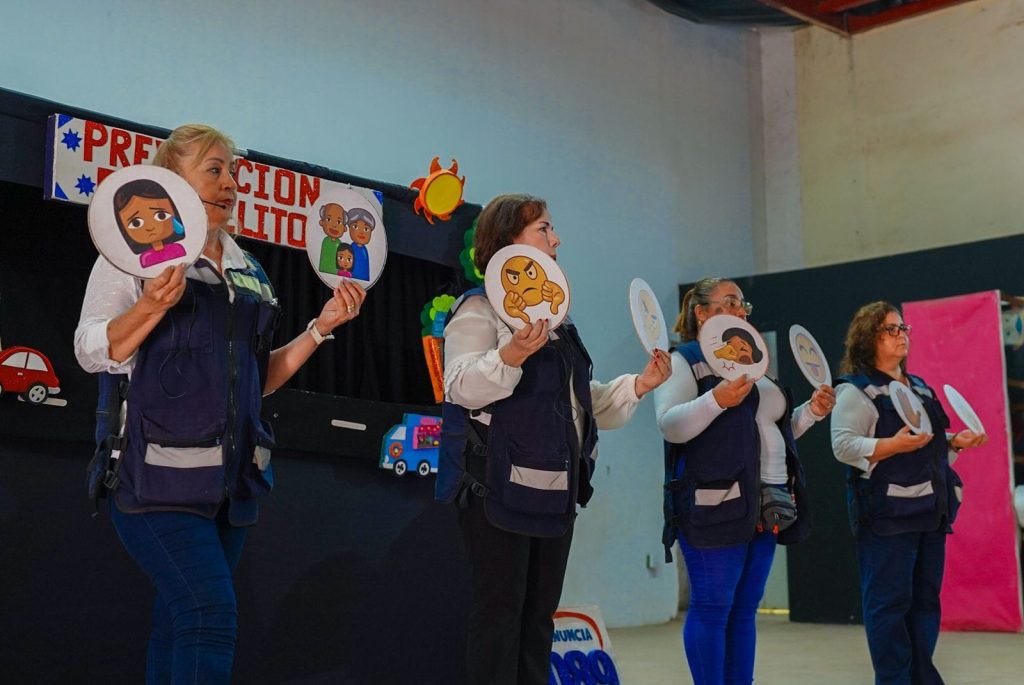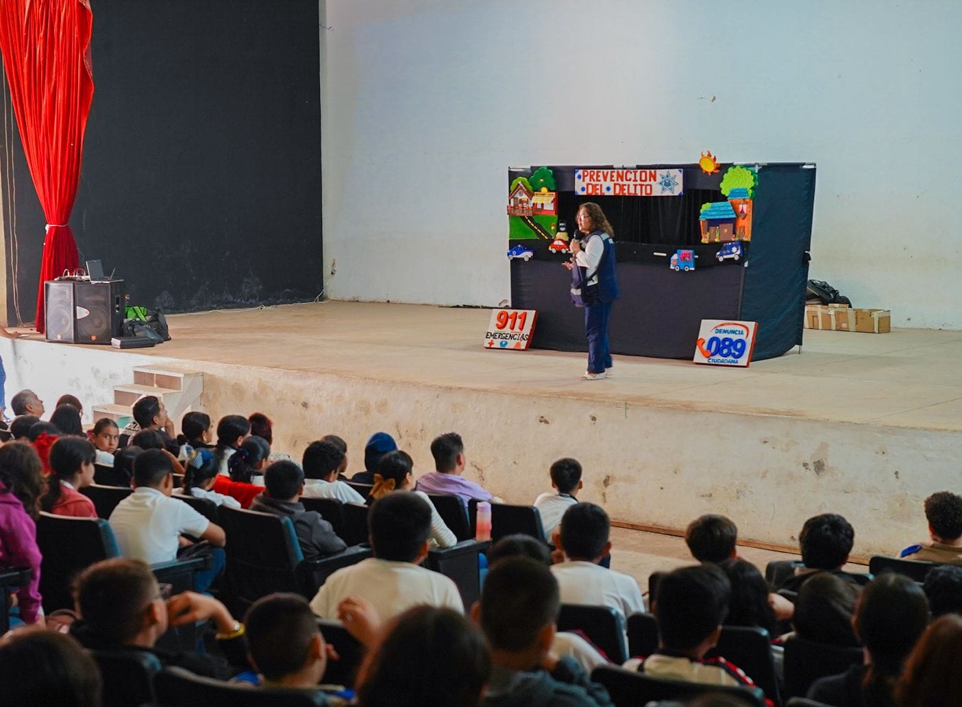 Estudiantes de las escuelas primarias “Antonio R. Laureles,” secundaria “Heriberto Jara” e “Ignacio Zaragoza” y preparatoria “CECYTEN plantel #10” participaron en charlas sobre seguridad, con el objetivo de fomentar acciones preventivas para su bienestar y el de la comunidad. Durante la actividad se abordaron temas como el bullying, consecuencias del delito, el mal uso de redes sociales, apoyo a víctimas de violencia, robo a viviendas, extorsión telefónica, números de emergencia, prevención de trata de personas, robo a negocios y una presentación de teatro guiñol.