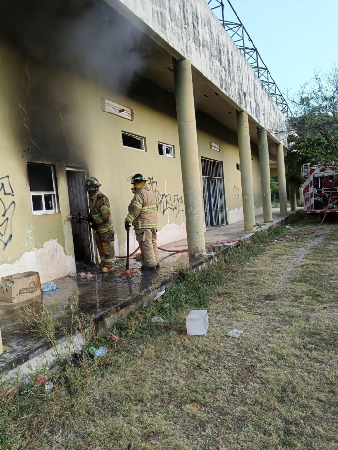 La Secretaría de Seguridad y Protección Ciudadana a través de los Bomberos de Nayarit atendió la mañana de este sábado el reporte de un incendio al interior del estadio de fútbol en la localidad de la Peñita de Jaltemba, en el municipio de Compostela.