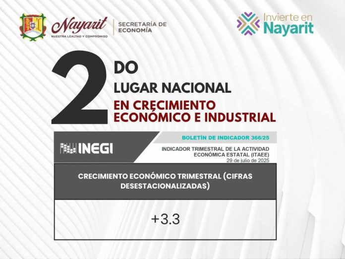 En el primer trimestre del año, Nayarit se ubicó como la segunda entidad con mayor crecimiento económico del país, con un avance del 3.3 % en su actividad económica, de acuerdo con datos del INEGI.