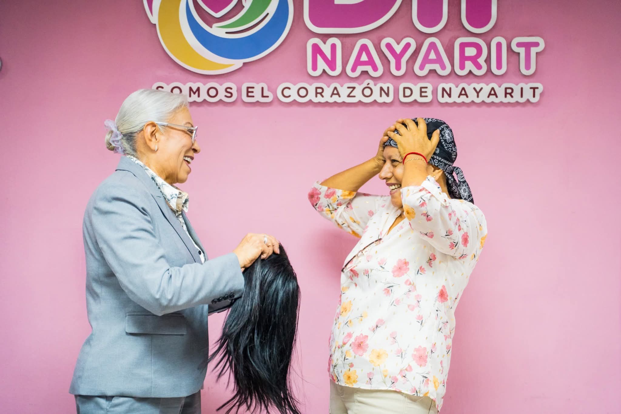 Tepic, Nayarit, 31 de julio de 2025.- Con el propósito de otorgar apoyo emocional y fortalecer la autoestima de quienes enfrentan una batalla contra el cáncer, la presidenta del Sistema DIF Nayarit, doctora Beatriz Estrada Martínez, encabezó la entrega gratuita de 10 pelucas oncológicas artesanales en beneficio de igual número de mujeres.
