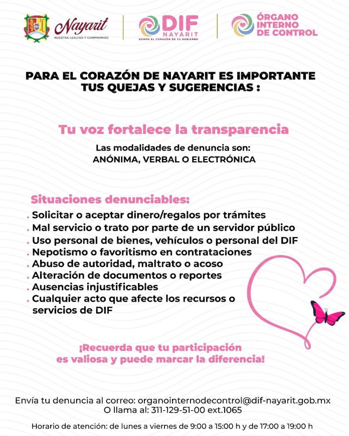 El Sistema DIF Nayarit abrió un espacio para que la población exprese sus quejas y sugerencias, con el objetivo de fortalecer una administración pública más transparente y cercana.