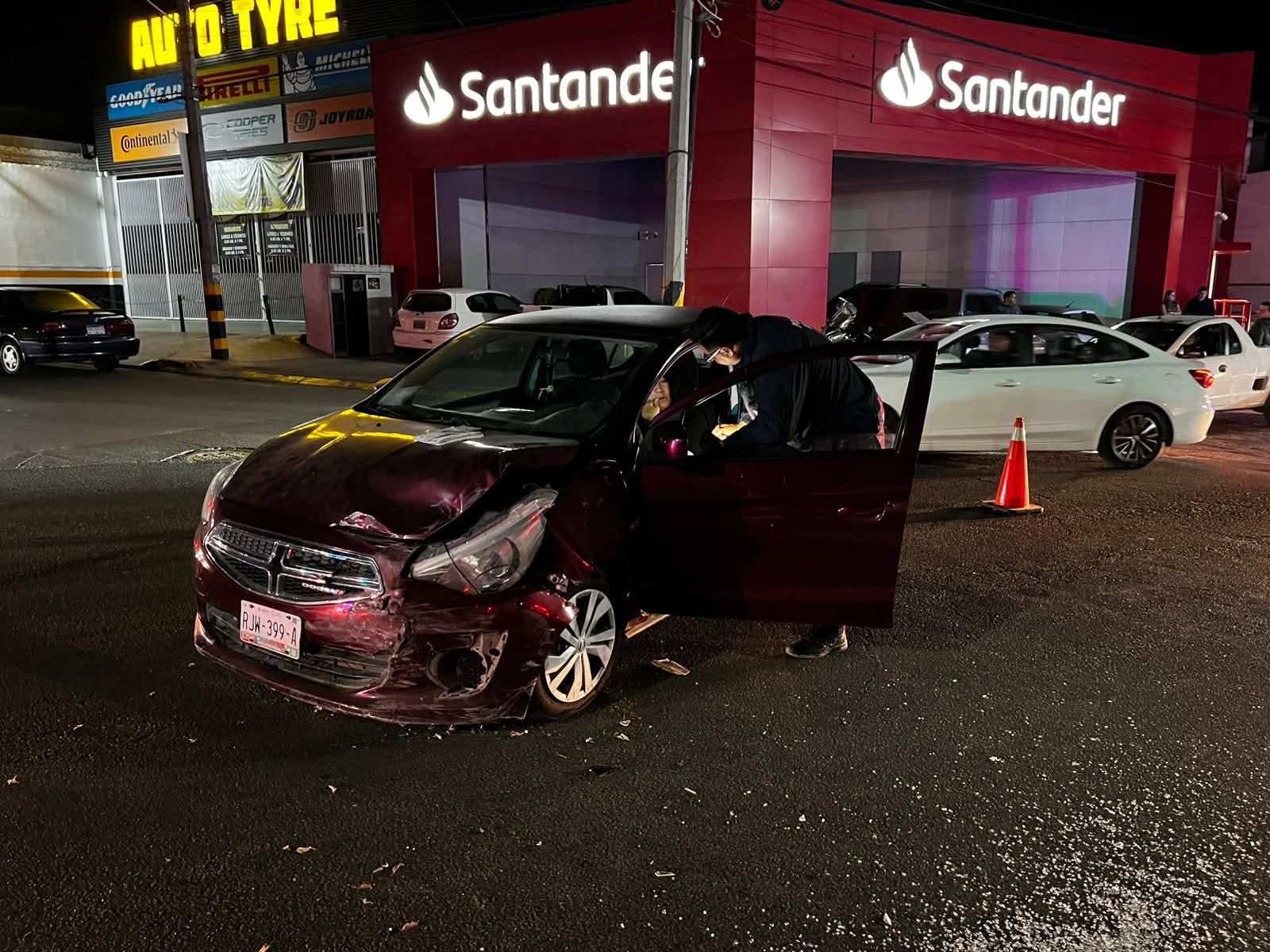 Un fuerte accidente se registró en el cruce de las avenidas Insurgentes y Oaxaca, en la zona centro de Tepic, luego de que un vehículo MG5 color blanco presuntamente invadiera la circulación y provocara un choque contra un Dodge Attitude color tinto.