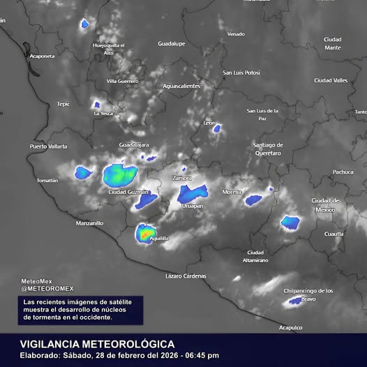 La inestabilidad se ha concentrado especialmente entre los estados de #Jalisco (sur), #Michoacán, #Edomex y #Guerrero, generando lluvias, caída de granizo y actividad eléctrica de manera aislada.