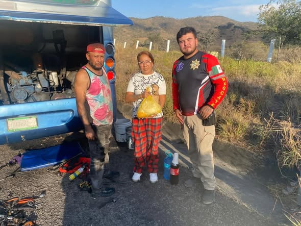 Se solicita apoyo con alimentos para una pareja varada en un autobús de turismo descompuesto desde anoche.