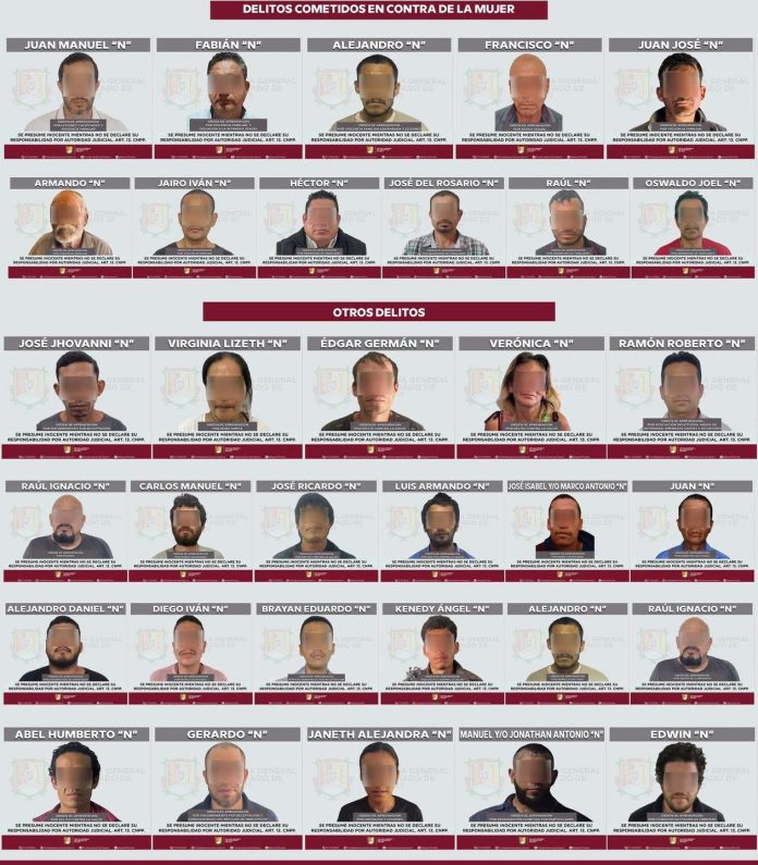 La Fiscalía General del Estado asestó un golpe a la criminalidad al cumplimentar 38 órdenes de aprehensión entre el 9 y el 11 de marzo, destacando capturas de alto impacto por delitos de secuestro y desaparición cometida por particulares; además de 13 detenciones vinculadas directamente a la violencia de género.