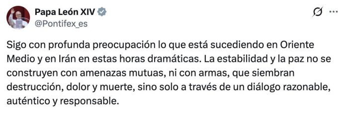 Ante la creciente tensión entre Irán, Estados Unidos e Israel, el papa hizo un llamado firme a la prudencia y al entendimiento.