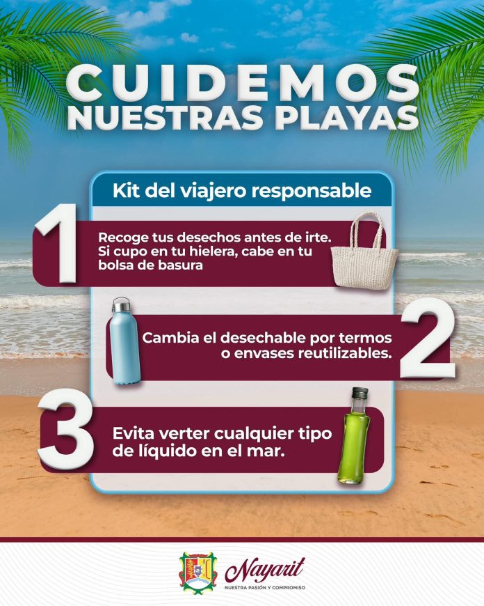 🌊🌴 Cuidemos nuestras playasCuidar y disfrutar de las playas y destinos turísticos es tarea de todas y todos, por ello; desde el Gobierno del Estado te invitamos a disfrutar responsablemente: recoge tu basura, utiliza envases reutilizables y evita contaminar el mar. ♻️Juntas y juntos, conservemos la belleza natural de Nayarit.