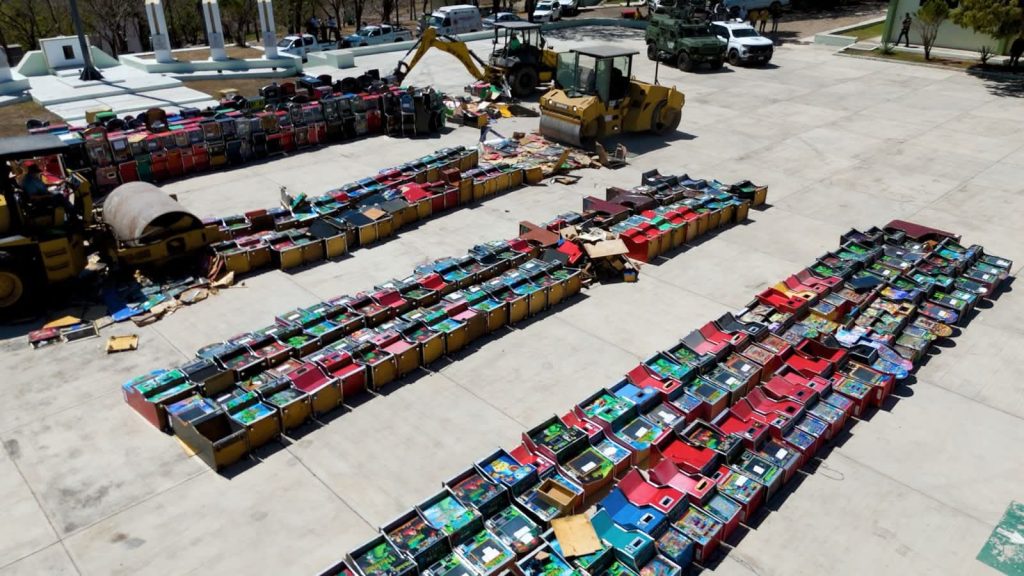 Como parte de la jornada, se realizó la incineración de narcóticos y objetos del delito, así como la destrucción de 592 máquinas tragamonedas aseguradas en distintas acciones operativas, además de la quema de casi 2 toneladas y media de sustancias ilícitas.