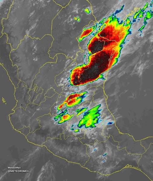 La interacción de canales de baja presión con una línea seca, la corriente subtropical y efectos locales ha provocado lluvias, rachas de viento y granizadas en el noreste, oriente y centro del país.