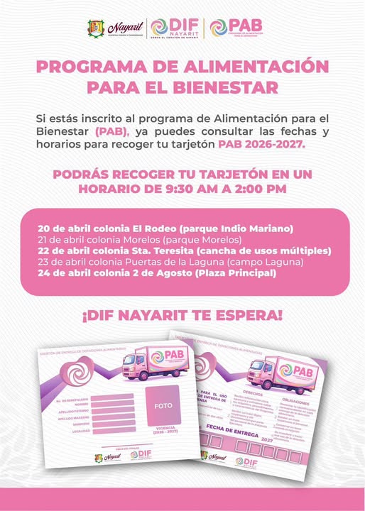El Sistema DIF Nayarit, encabezado por la doctora Beatriz Estrada Martínez, inicia la entrega de tarjetones del Programa de Alimentación para el Bienestar (PAB) 2026-2027.
